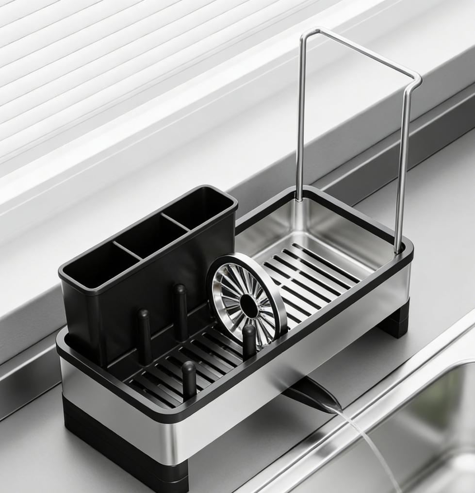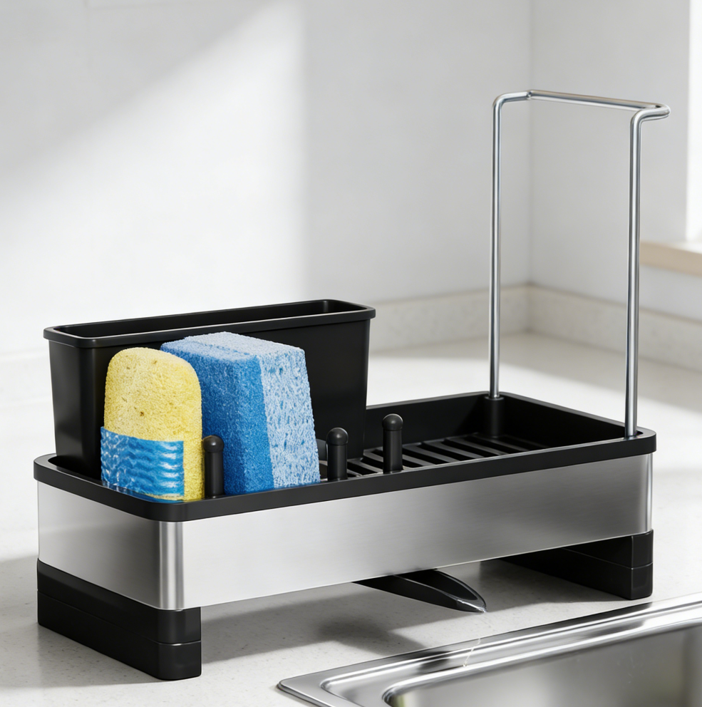 Black Stainless Steel Sink Sponge Organiser with Dishcloth Rack
