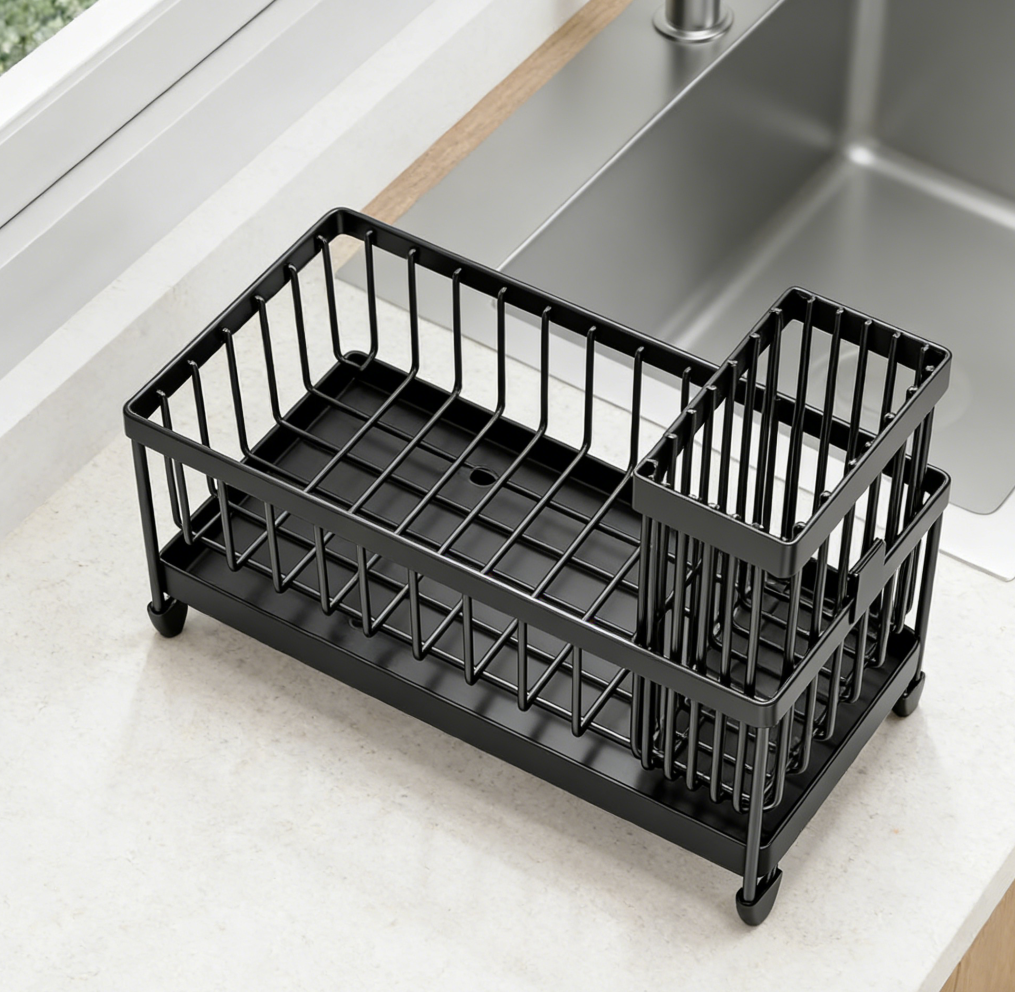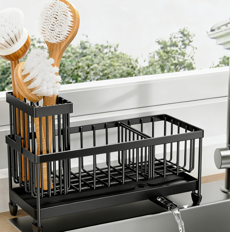 Stainless Steel Kitchen Sink Sponge Caddy with Brush Holder, Black